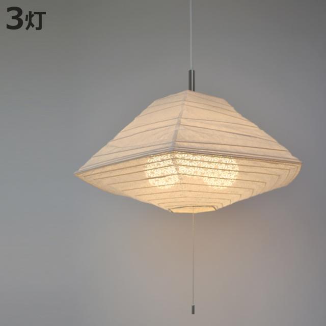 ペンダントライト 3灯 和紙 揉み紙X麻葉白 日本製 ペンダントランプ ( 照明 LED 和室 和風 和風照明 寝室 紐付き 引き紐 吊り下げ E26 E12 デザイン 和 和モダン 照明器具 ライト おしゃれ インテリア リビング 多角形 )