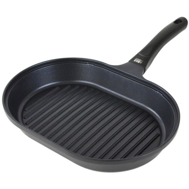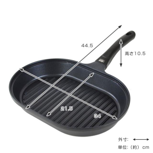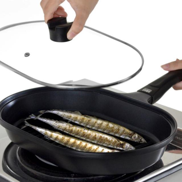 - 購入番号733007912 魚焼きグリルパンでも肉も焼いても良い感じ 溝がある為余分な油が出でも良い感じで焦げ目も付き焼けるし蓋付きなので煙を余り気にせず焼けるのがいい 厚みが有る為温まったら弱火にして焼けるのが省エネで助かる、ただちょっと重いのがネックかな?