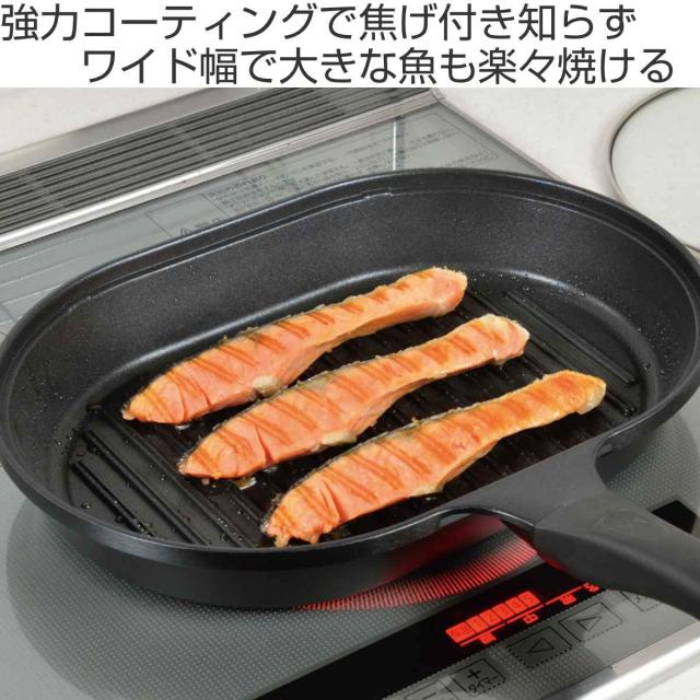 《 キッチン用品 台所用品 料理道具 調理小物 調理用品 調理道具 おすすめ オススメ 便利 役立つ 扱いやすい 実用的 ワイド幅 傷に強い 汚れに強い 熱変形に強い アルミダイキャスト製 ブルーシャイントップコート ミッドプライマーコーティング プライマーコーティング オイルカット 金属ヘラ使える 金属ヘラOK さんま 秋刀魚 鯛 タイ 焼魚 蓋付き ふた付き ガラス蓋 お手入れ簡単 焦げ目 LH412 》