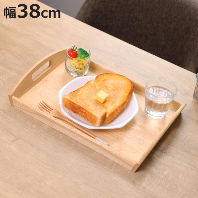 お盆 トレー 角型 木製 ( 木製トレー トレイ キッチントレー キッチントレイ 38×25.5cm 木製トレイ キッチン用品 キッチン雑貨 ウッド おぼん 配膳 取っ手付き 持ち手付き おしゃれ )