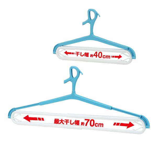 アームが最大干し幅70cmまで伸びることが可能です。アームを伸ばしてバスタオル用、アームを縮めて通常衣類用、アームを回転させて速乾用と様々な使い方ができるアイデアハンガーです。