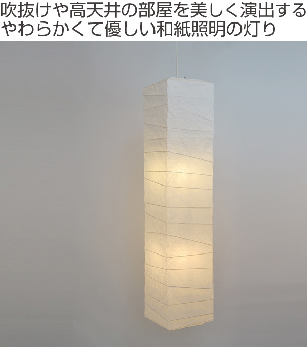 吹き抜けや高天井のお部屋を、心が安らぐ落ち着いた空間にお家でのひとときを贅沢に、そしてゆっくりと過ごしたい…。和紙のあかりはそんな願いを十分すぎる程かなえてくれます。和紙を通してみる灯りはやわらかく、とてもリラックスできます。 ![]() 開放感のあるお部屋を演出する縦長の和紙照明吹き抜けや天井の高いお部屋にぴったりの照明です。存在感がある縦長の大きな照明ですが、シンプルでクセがなく飽きのこないデザインです。 やわらかく優しい光りで、美しい空間を演出します。吹き抜け用、また店舗照明としてもオススメです。 ![]() | ||