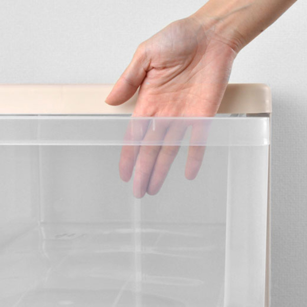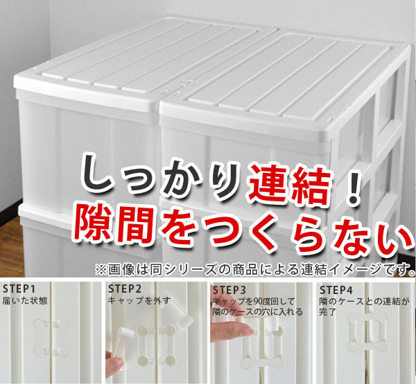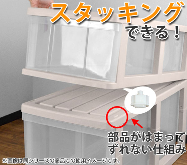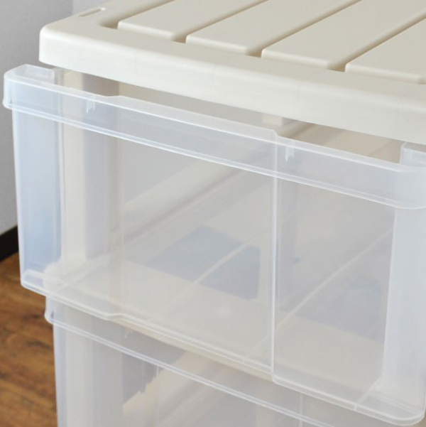 上に重ねても、ずれないようスタッキング機能付きです。同じシリーズの収納を上にプラスすることで、同じスペースで容量を大幅に増やせます。