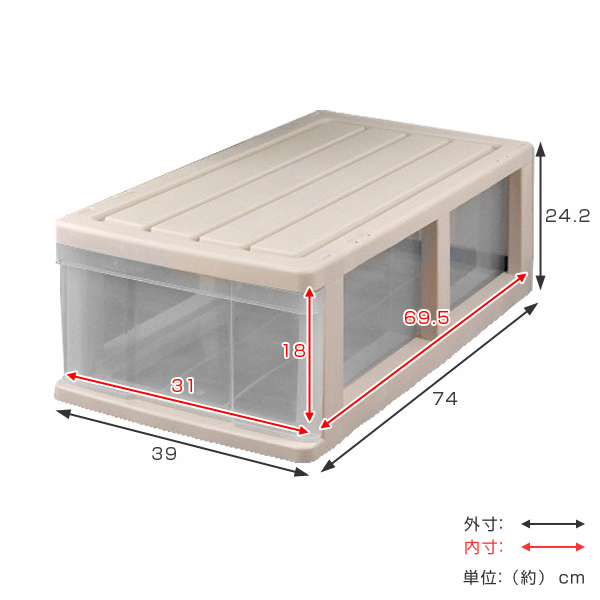 収納ケース 押入れ収納ケース 1段 引き出し 奥行74cm ベージュ プラスチック ( 押入れ収納 収納ボックス 収納 衣装ケース 押し入れ スタッキング 日本製 連結 衣類ケース 収納ケース 引き出し)