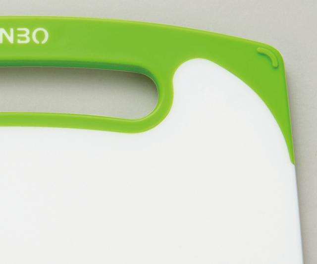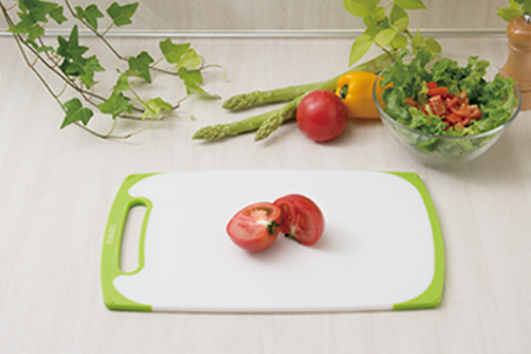 ●ラバー付で滑りにくい耐熱抗菌まな板です。