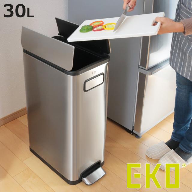 EKO ゴミ箱 30L エコフライ ステップビン ペダル ( イーケーオー ごみ箱 30リットル 幅26 ペダル式 両開き ふた付き 分別 角型 ステンレス 一年保証付き スリム バタフライ ゴミ箱 ふた付き ゴミ箱 30リットル)