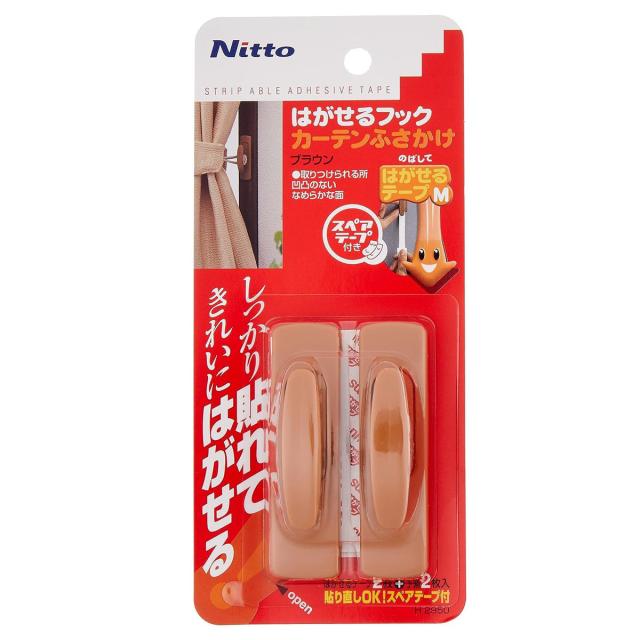 ●しっかり貼ってきれいにはがせる、カーテンのふさかけ用フックです。