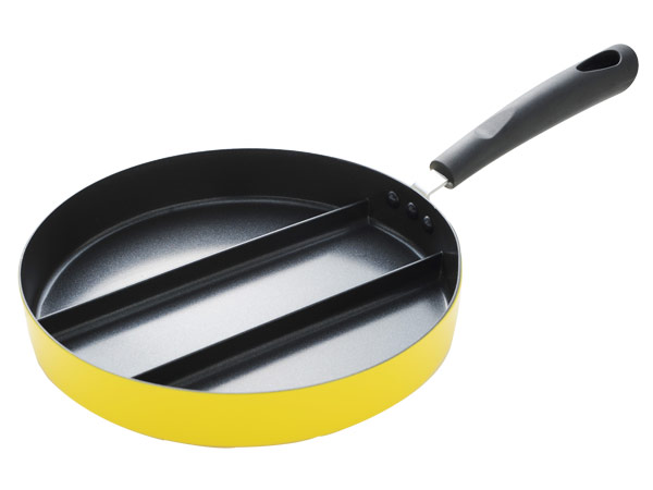 3つの仕切りがあるので、3種類のおかずを同時に調理できるフライパンです。ガス・IHなどオール熱源対応です。