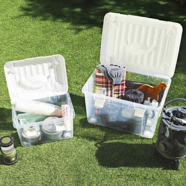 フタ付きで長期間の保管でもホコリを防げるので、防災グッズ・食品・日用品ストックの収納にもおすすめです。