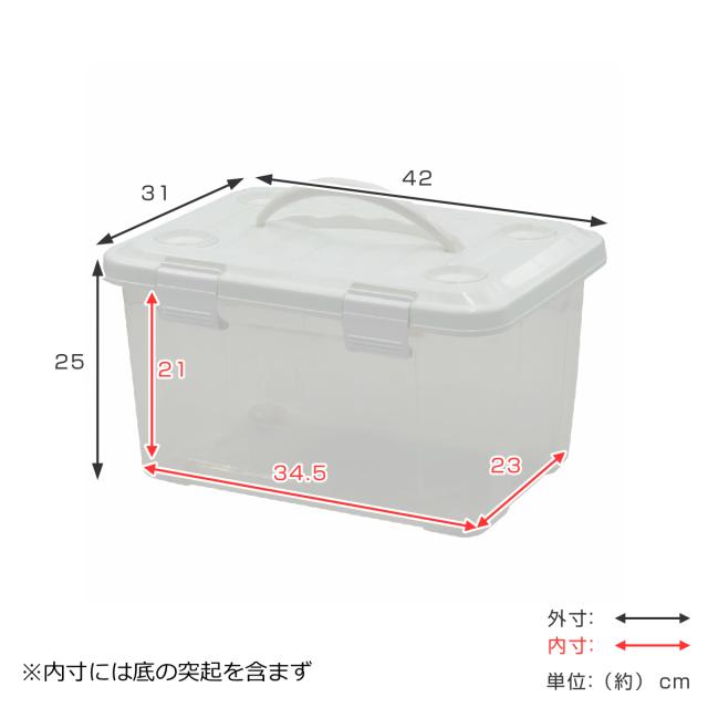 | サイズ | 約 幅42×奥行31×高さ25(cm) 有効内寸(突起含まず底面のサイズ):約 幅34.5×奥行23×高さ21(cm) |