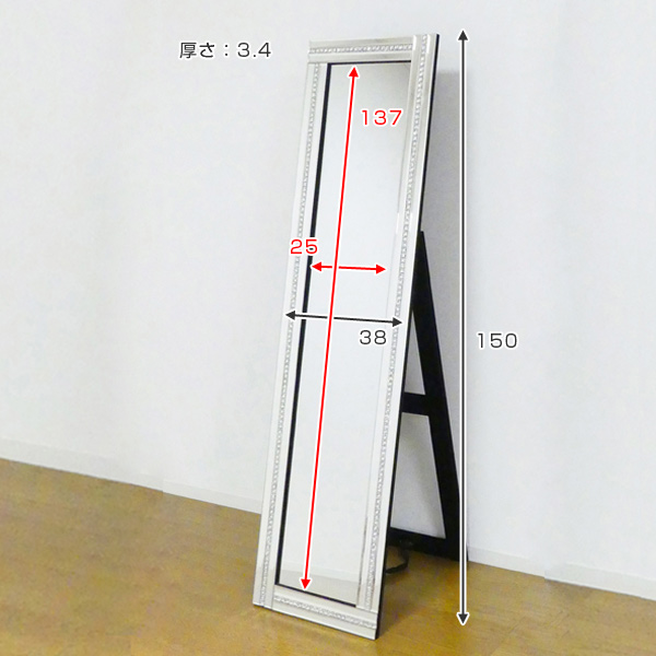 ●周りにあしらわれたクリスタル調の装飾がモダンでスタイリッシュな全身鏡です。