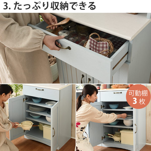 カップボード 食器棚 カントリー調 フレンチスタイル 幅60cm ( キッチンボード スパイスラック おしゃれ ブルー 水色 アンティーク シャビーシック フレンチナチュラル )