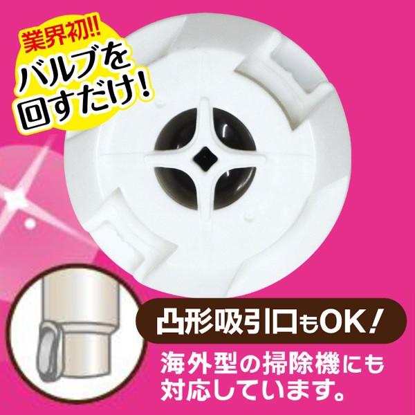 吸引バルブは一般的な掃除機のフラットな吸引口に加え、海外メーカー掃除機の凸型吸引口にも対応しています。