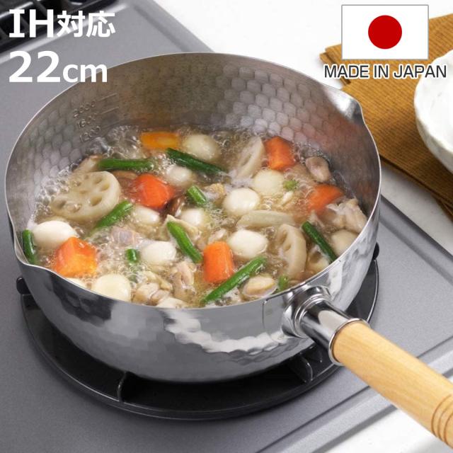 雪平鍋 22cm IH対応 ステンレス製 日本製 ( 行平鍋 片手鍋 調理器具 ガス火対応 ゆきひら鍋 ユキヒラ鍋 ステンレス鍋 目盛り付き オール熱源対応 )