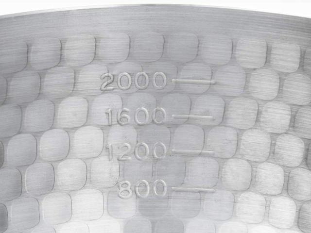 鍋の内側には、 200ml刻みで800〜2000mlまでの目安目盛りがついています。