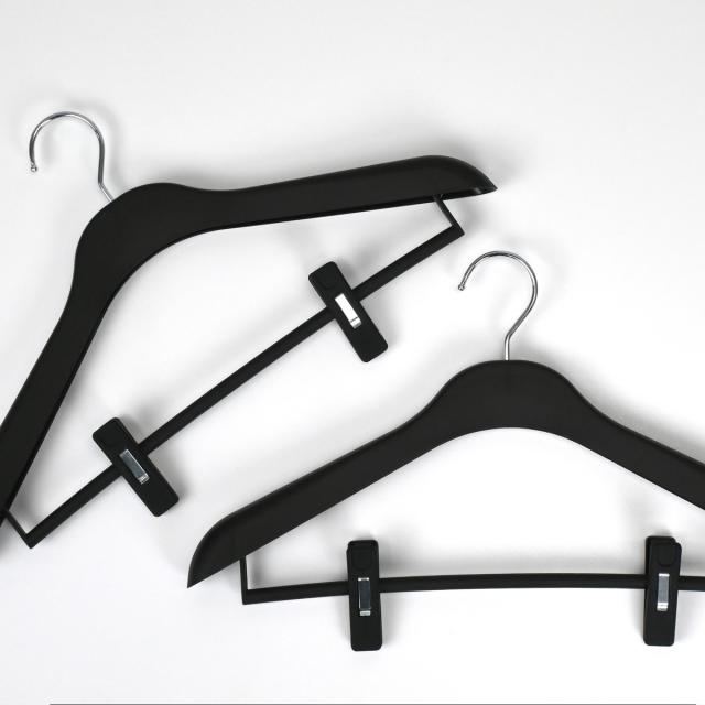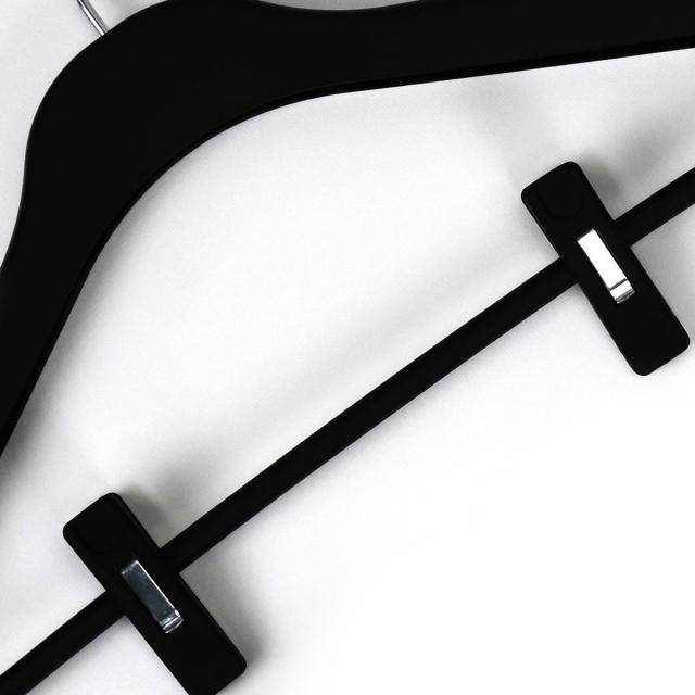 ベーシックなデザインのスーツ用フォーマルハンガーです。クリップが付いているので、ジャケットを収納しながらパンツやスカートを一緒に掛けておくことができます。コーディネートしたスタイルをまとめて掛けておけるので、朝の支度にも便利です。