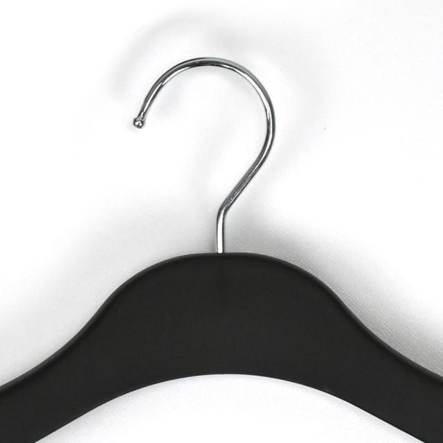 衣類の肩口に沿う丸みのある形状で、衣類に馴染みます。また、肩先に厚みがあるので、ジャケットやスーツの型崩れを防ぎます。細いハンガーでは跡が残ってしまうニットや薄手の衣類にも最適です。