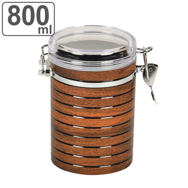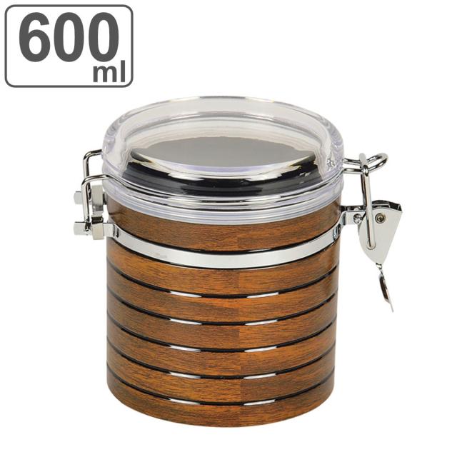 保存容器 ロック式 キャニスター 円筒型 600ml スプーン付 ( 密閉 プラスチック プラスチック製 プラスチック保存容器 丸型 木目 コーヒー 筒型 円柱形 キッチン用品 キッチン雑貨 食品保存 )