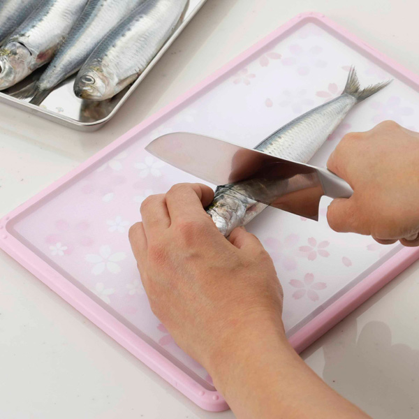 ![]() ![]() コンパクトで扱いやすいA4サイズちょっとした調理や、一人暮らしの方にもおすすめのコンパクトサイズ。 お弁当作りや小さな食材を少しだけ使いたい時など、調理の使い分けにも最適です。 切ってそのままお鍋へ!食材を切ってそのままお鍋へ入れられる、片手で持ちやすいサイズです。 ![]() 気分転換や使い分けに!表と裏で異なるデザイン表面と裏面でデザインが異なるので、野菜と肉などで使い分けができます。 普段は片面だけの使用でも、気分転換に変えてみるのもいいかもしれませんね♪ ![]() ![]() すべり止め付きでしっかり切れるゴム質のフチと、四隅の滑り止めがしっかりサポート! 滑りにくく、食材もしっかり切ることができます。 可愛い桜柄で気分も上がる♪いつものキッチンに彩りと可愛さをプラス! かわいい桜の柄のまな板と、別売りでお揃いの包丁もございます。 まるで額縁と桜のイラストのようなデザインで、乾かす時も、使わない時に立てかけておいても、可愛くキッチンを彩ります。 |