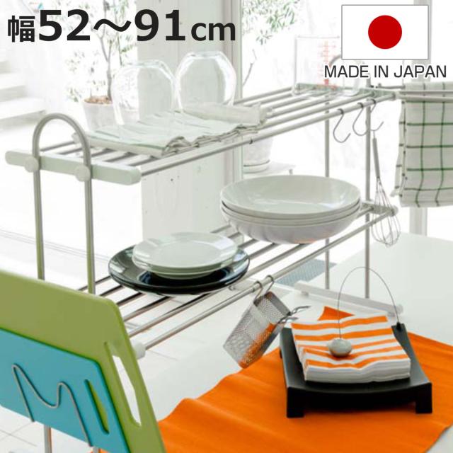 水切りラック 2段 伸縮式 幅52〜91cm ステンレス アクセサリーセット 組立式 ( 水切り棚 水きり キッチン収納 つっぱり 突っ張り棚 水きりラック 収納棚 伸縮タイプ 幅調節可能 組み立て式 ステンレス製 )