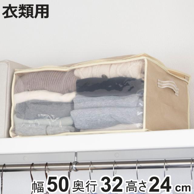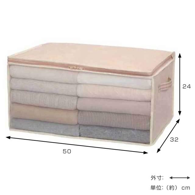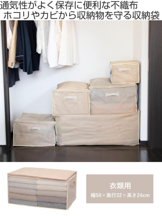 衣類整理袋 幅50×奥行32×高さ24cm 衣類袋 収納袋 持ち手付き ( 衣類収納袋 収納 衣類整理 洋服収納 衣類収納 洋服 衣類 タオル 透明窓付き 押入れ収納 クローゼット収納 不織布 )