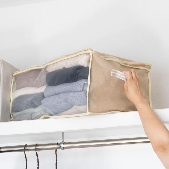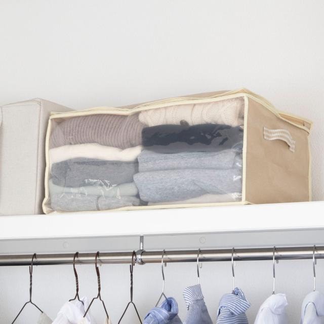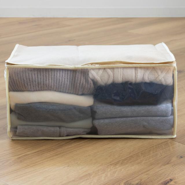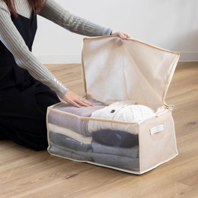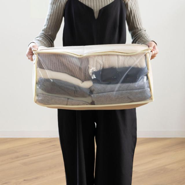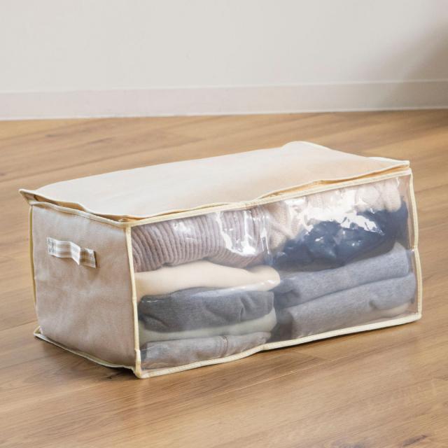 《 LH952 押入れ クローゼット 袋 便利 中が見える 収納ケース 収納バッグ 用品 無地 シンプル ベージュ 持ち運び 棚上 衣替え 来客用 季節物 シーズンオフ 保管 便利グッズ 便利用品 人気 おすすめ オススメ 》