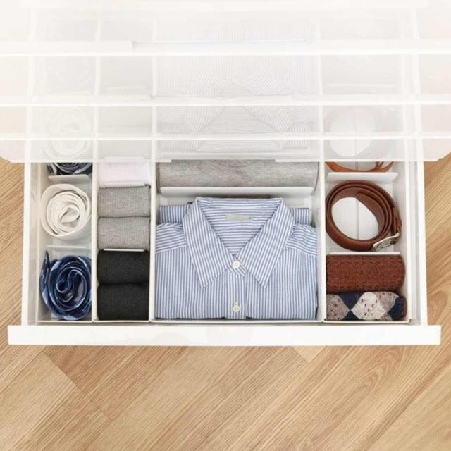 収納チェスト「フィッツプラス プレミアム」の引き出しに、こちらの仕切りケースを組み合わせれば、引き出し内が隙間なくピッタリフィットします。無駄なく、見た目もキレイに収納したい方にオススメの組み合わせです。