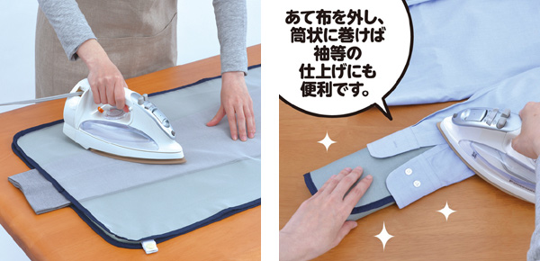 テーブルの上に広げて楽な姿勢でアイロンがけ