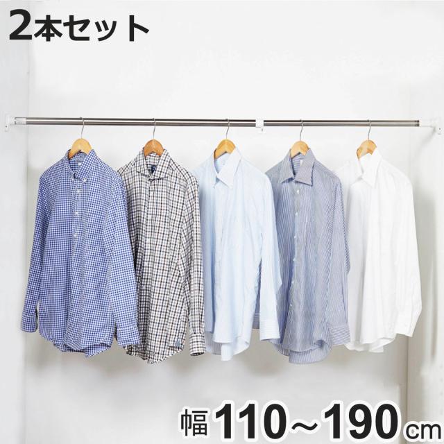シンプルなステンレス製突っ張り棒 110〜190cm 2本セット