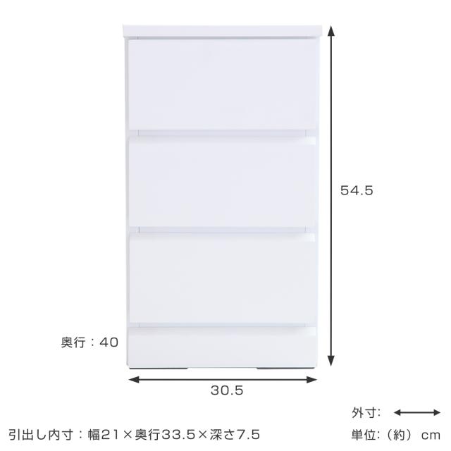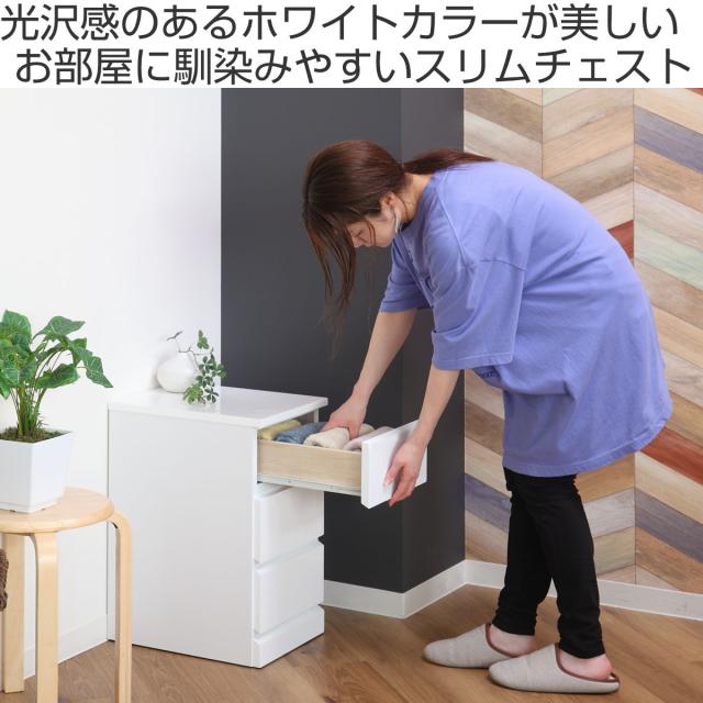 スリムチェスト 3段 鏡面仕上げ 幅30cm ( 収納 チェスト スリム 完成品 ローチェスト タンス 白 ホワイト リビングチェスト リビング収納 衣類収納 引き出し おしゃれ リビング 小物収納 木製 洋服タンス コンパクト )