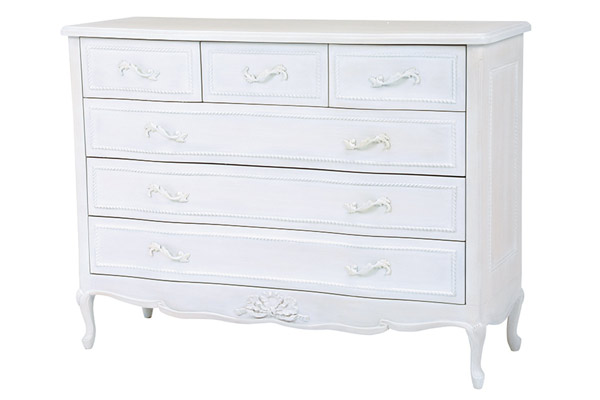 気品漂うエレガントデザインのチェスト 幅120cm美しい曲線と細部にまで施された装飾が魅力のチェストです。上品で優雅なフォルムはワンランク上の空間を演出します。