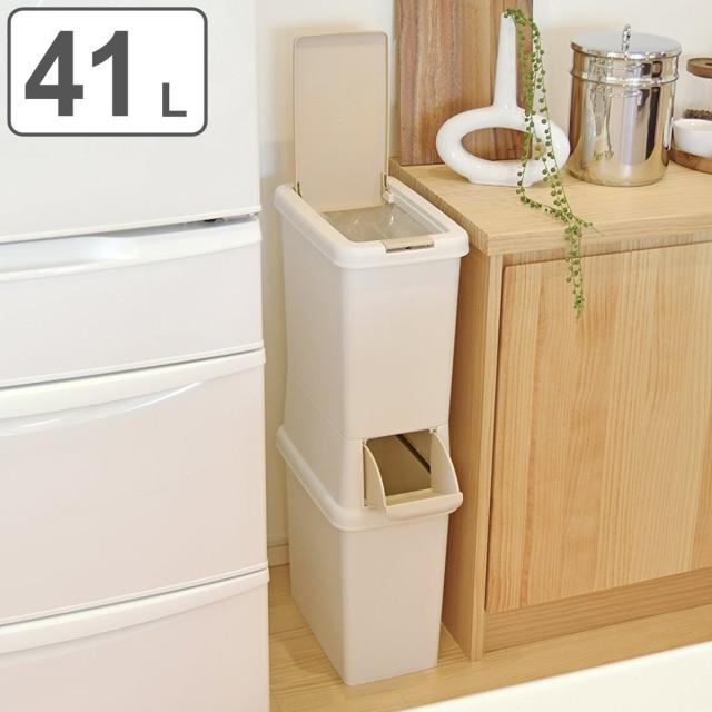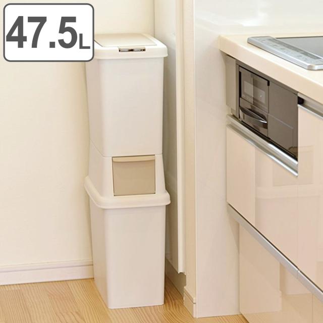 ゴミ箱 47.5L 分別 二段 ダストボックスファイン スリム ( ごみ箱 47.5リットル 縦型 2分別 ふた付き プッシュ式 省スペース シンプル ダストボックス 袋止め付き 袋が見えにくい キッチン )
