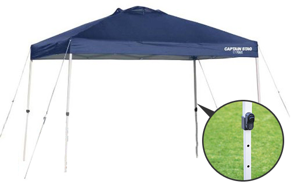 フレームの可動部のロックはプッシュ式で、指が挟まるなどの危険が無く、設営・収納時も安全で簡単に行うことができます。支柱フレームで3段階の高さ調節が可能です。