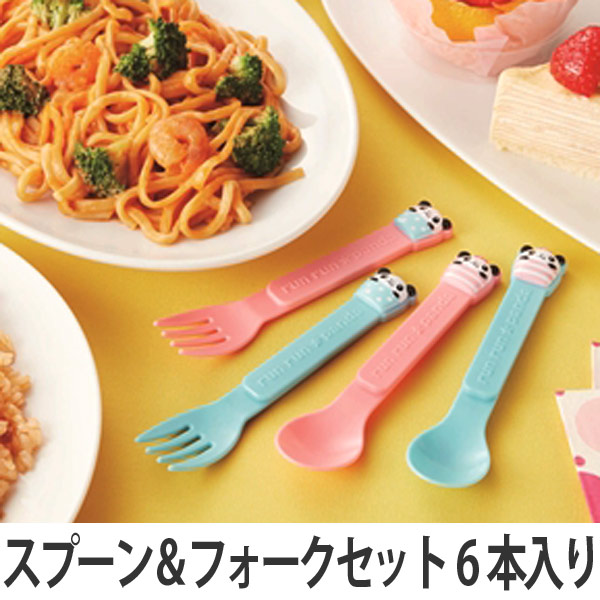 スプーン&フォークセット プラスチック製 るんるんカップパンダ 6本入り ( カトラリー 使い捨て パーティ アウトドア 遠足 ピクニック パーティーグッズ お弁当 )