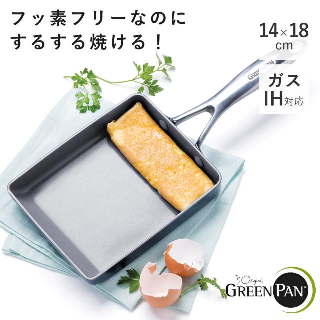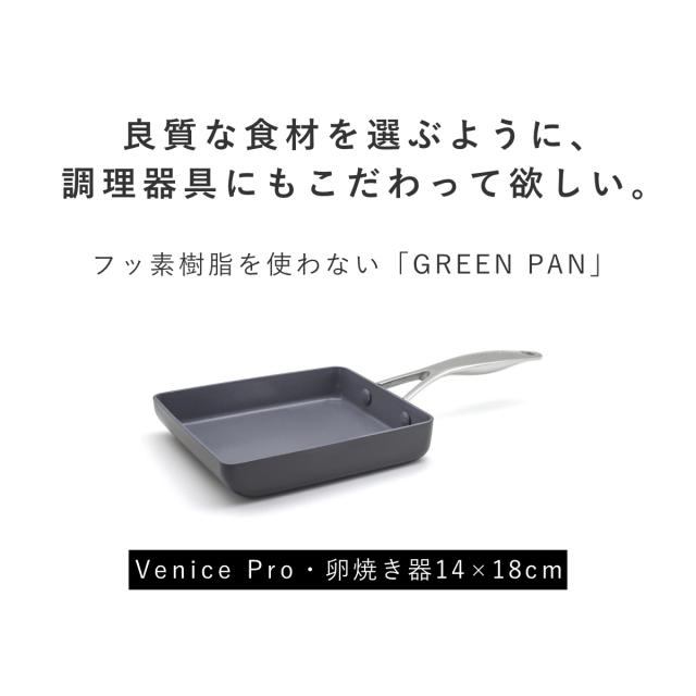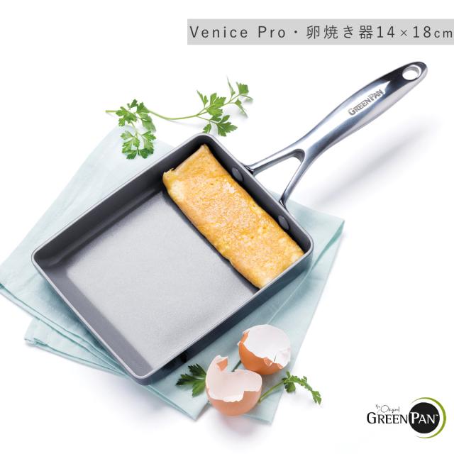 GREEN PAN 卵焼き器 14×18cm IH対応 ヴェニスプロ ( ガス火対応 グリーンパン 玉子焼き器 玉子焼きフライパン エッグパン フライパン 朝食 弁当作り 卵焼き 玉子焼き 時短調理 軽い アルミ製 マグニート加工 金属ヘラOK おしゃれ )