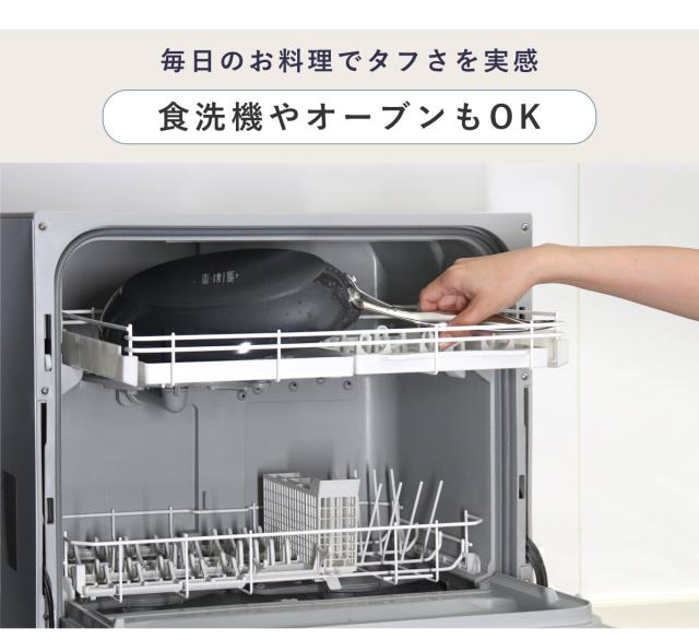 お料理の際には金属製キッチンツール、オーブンの使用、お手入れの際には食器洗浄機の使用が可能。毎日のお料理でタフさを実感していただけます。