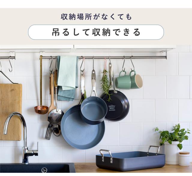 取っ手の先端に引っ掛け穴が付いているので、場所を取らずに吊るして収納することができます。