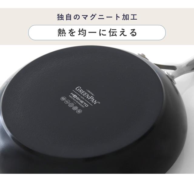 熱変形に強く、熱伝導の良い独自のマグニート加工を施しています。熱をムラなく伝えて料理を美味しく仕上げます。