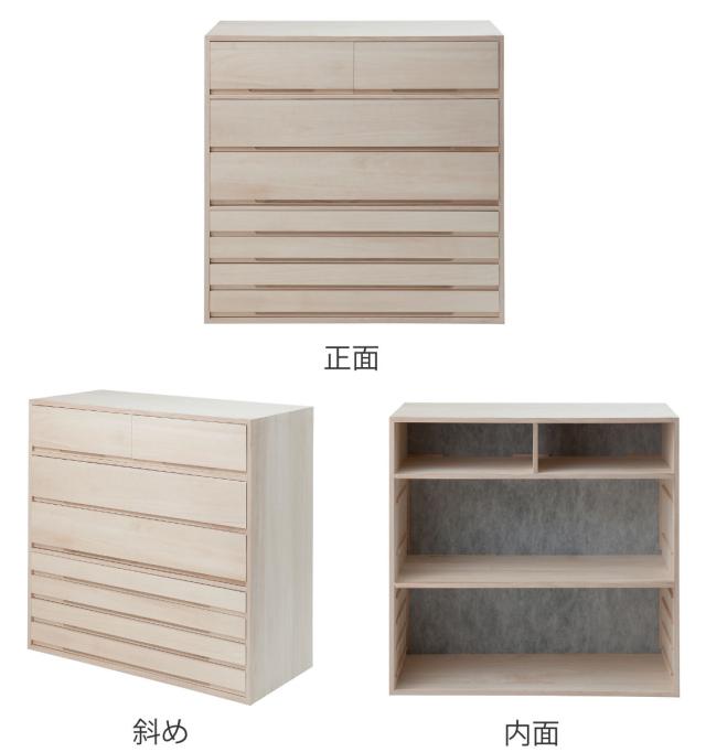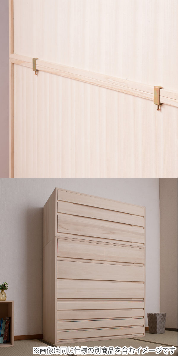 | 材質 | 本体:天然木(桐材) 引出底板、背板:天然木桐化粧板 背板内面:竹炭シート内臓不織布 |