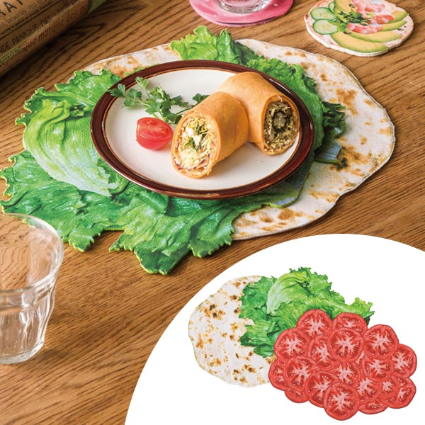 《LH1861 リアルプリント 撥水加工 テーブルマット トレー ティーマット 食卓マット お食事マット おもしろ雑貨 インテリア おもしろ 雑貨 プレゼント ギフト 贈り物 誕生日 食べ物 トルティーヤ トマト レタス プリント インスタ インスタグラム インスタ映え カフェ食器 カフェ雑貨 人気 おすすめ》