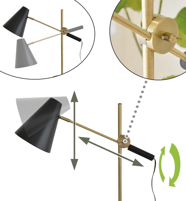 シェードに付いているバーと支柱の交差する部分にあるネジを緩めると、高さや角度・向きの調整ができます。