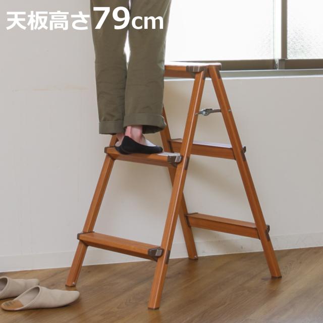 高い所にらくらく手が届く、便利な3段脚立です。オシャレな木目調デザインで、お部屋の雰囲気を損ないません。生活空間に溶け込むインテリア性に優れた脚立です。