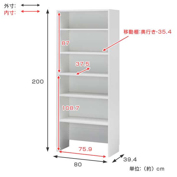 | サイズ | 約 幅80×奥行39.4×高さ200(cm) |