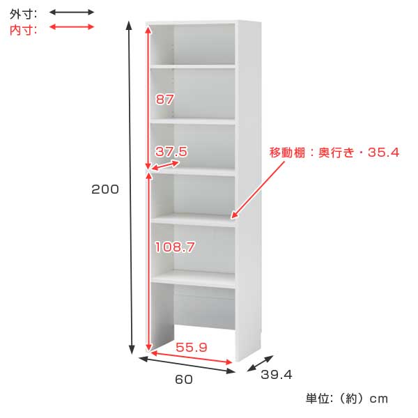 | サイズ | 約 幅60×奥行39.4×高さ200(cm) |