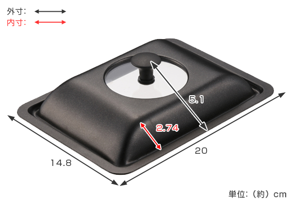 四角い角を丸く立ち上げる形状とスチーム効果を考慮したドームの高さは、脇先生のこだわりのひとつです。27.4mmの高さを持たせることで、お料理のレパートリーが広がります。