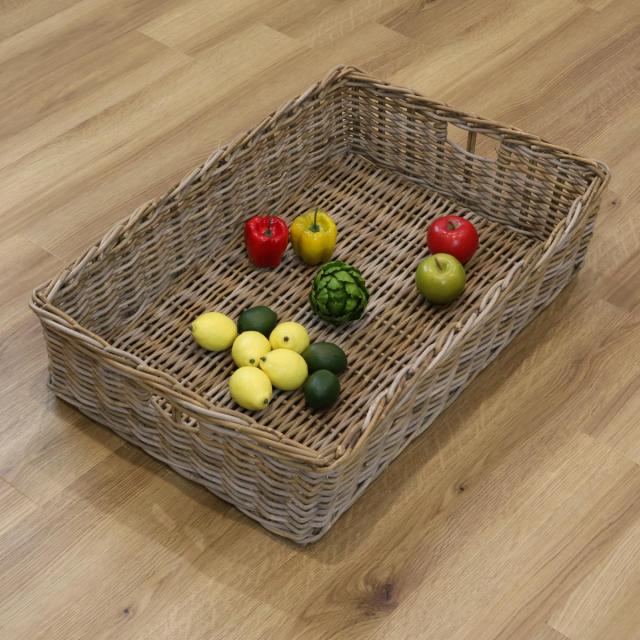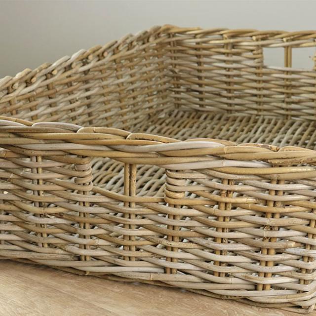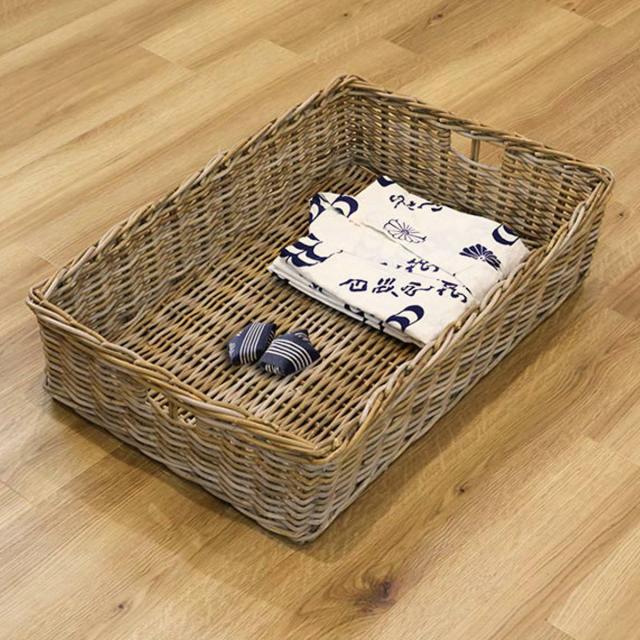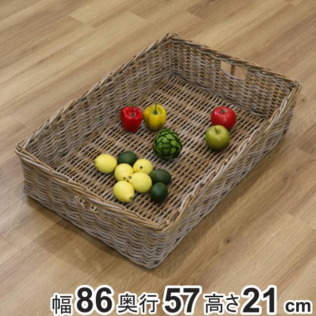 バスケット ラタン 幅86×奥行57×高さ21 持ち手付き かご 大きい ( 収納 カゴ 天然素材 コボ 大 特大 籐 小物入れ 収納かご 収納バスケット 浅型 編み おしゃれ 大容量 籐かご ラタンバスケット キッチン リビング 丈夫 )