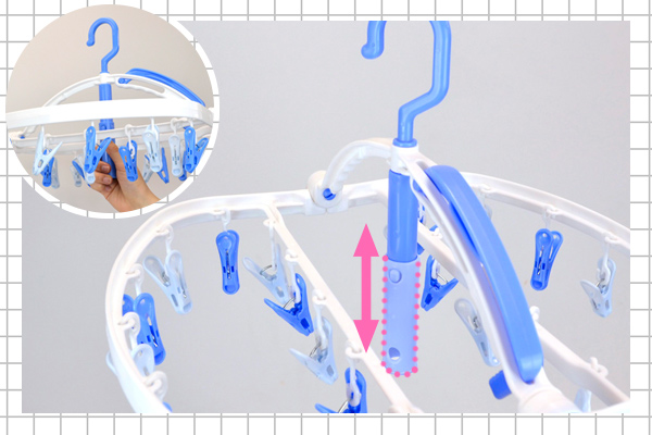 グリップ部分を伸ばせるので、高い位置にある物干し竿に掛けるときもラクチンです。