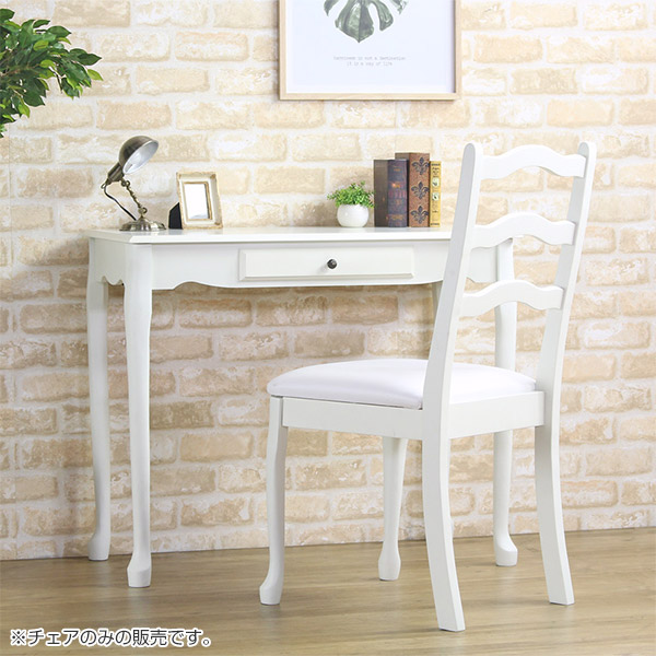 デスクチェア 木製 椅子 アンティーク調 姫系 座面高48.5cm ( チェア イス 椅子 チェアー いす ダイニングチェア 猫脚 ダイニングチェアー 肘なし 白家具 )