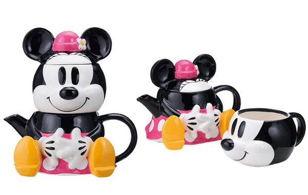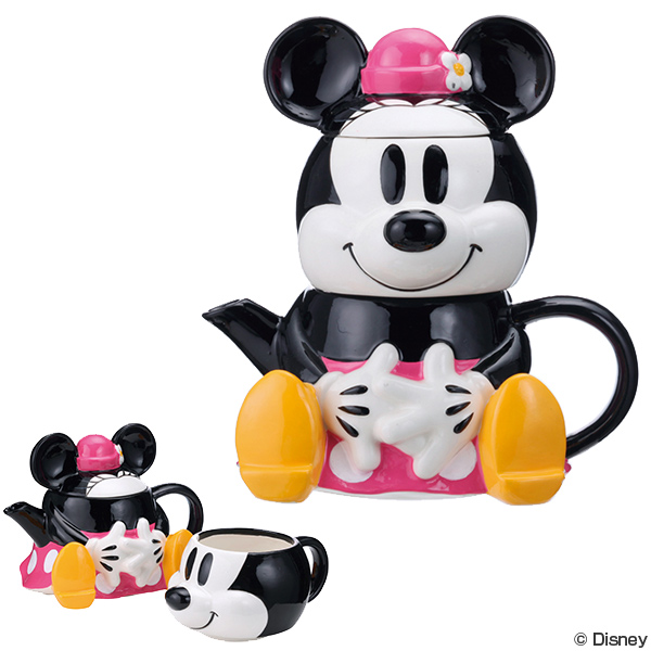 ミニーのオブジェのようなティーセット。お顔はティーカップ、胴体はティーポット、おミミ部分はポットの蓋として使えます。