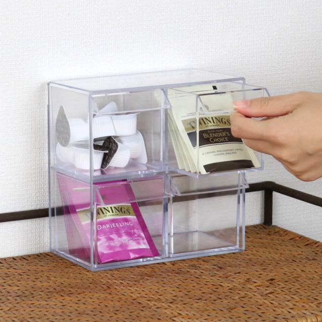 小物入れ 引き出し ミニ プラスチック クリア 卓上 透明 収納 2段×2列 デスコシリーズ ( 約 幅16.1×奥行9.6×高さ16.1cm 小物収納 小物ケース 小物 アクセサリー コレクション ケース 卓上収納 日本製 コレクションケース )